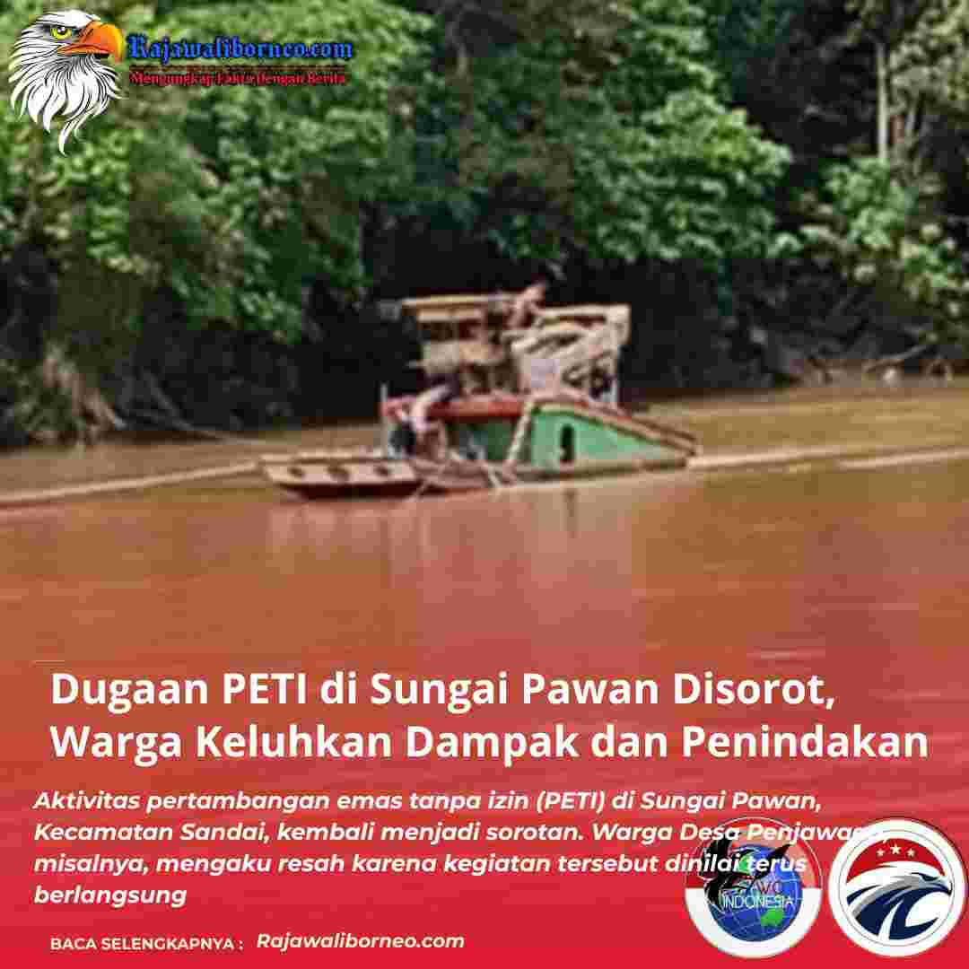 RAJAWALIBORNEO.COM. Ketapang, Kalimantan Barat – Aktivitas pertambangan emas tanpa izin (PETI) di Sungai Pawan, Kecamatan Sandai, kembali menjadi sorotan. Warga Desa Penjawaan, misalnya, mengaku resah karena kegiatan tersebut dinilai terus berlangsung tanpa penindakan tegas. Jum’at, (03/04/2026).